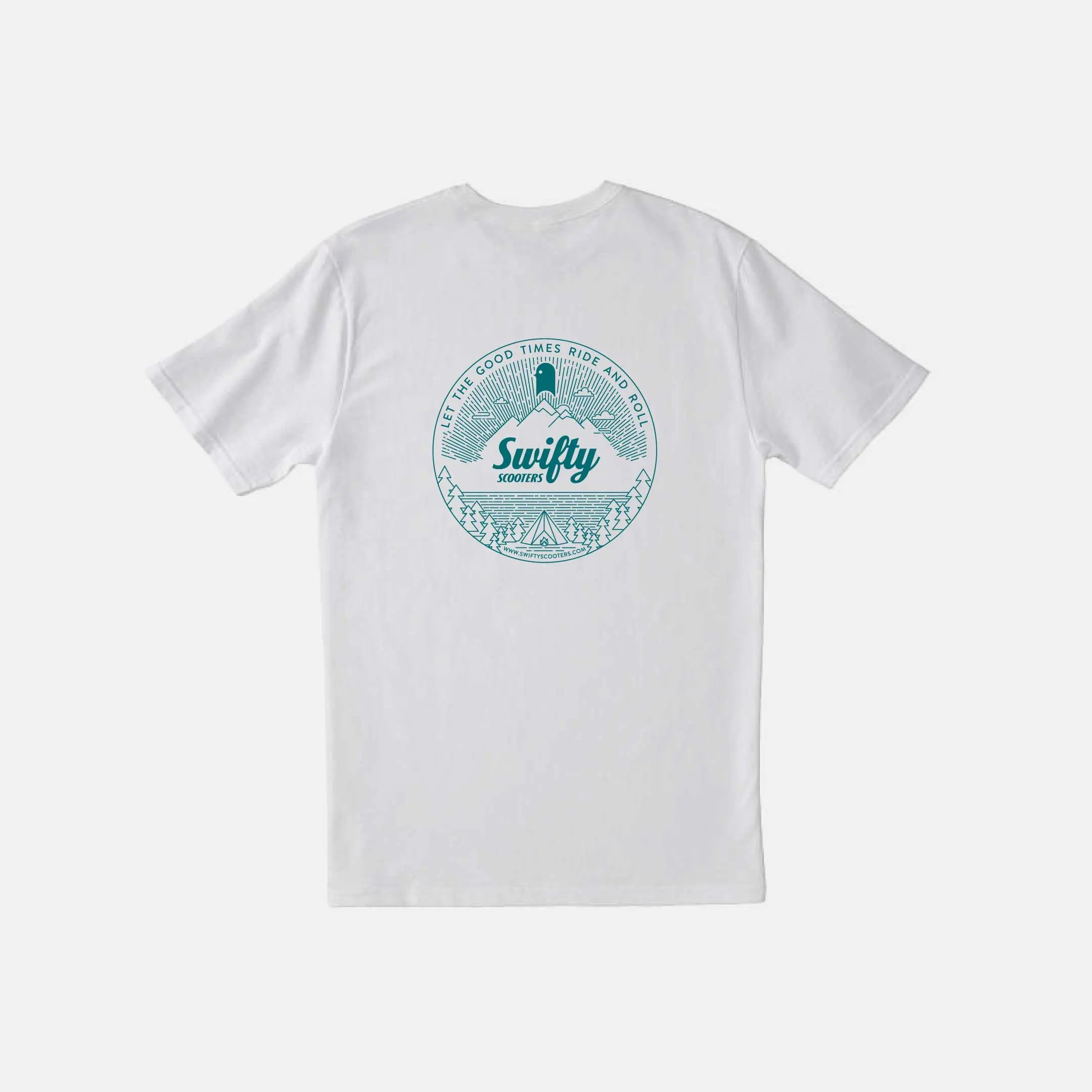 Inspired by adventure, the Good Times t-shirt features our mountain and sunset Swifty graphic on the back, and small Swifty logo on the front.