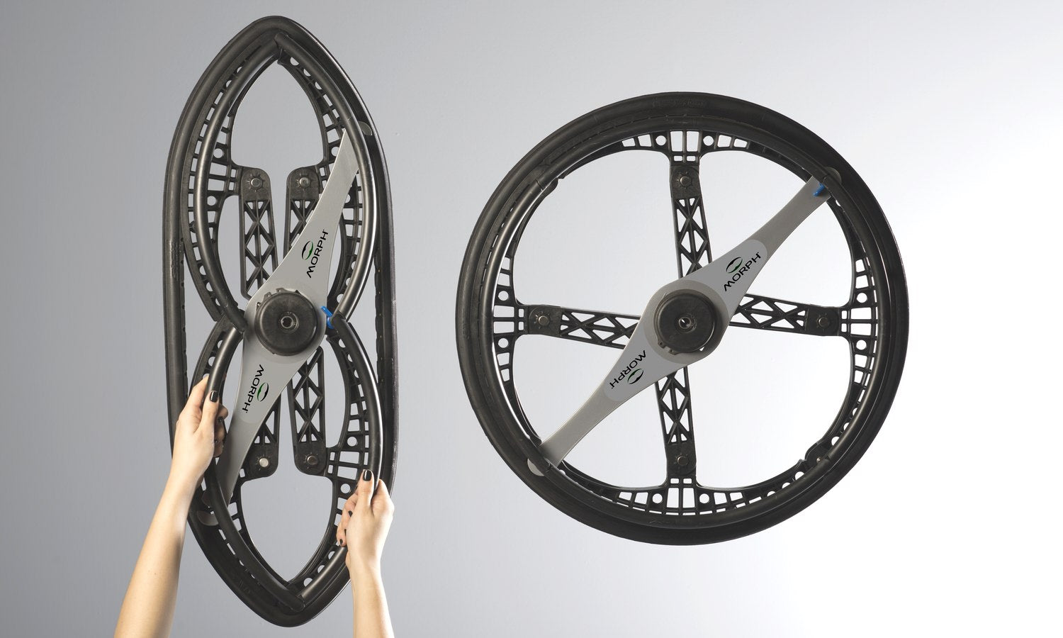 The world’s first folding wheel, The Morph Wheel was designed by Duncan Fitzsimons in 2013. Initially designed as a concept to apply to a bike, The Morph Wheel is now developed specifically for a folding wheelchair. Licensed by Maddak health care company in the US, the folding wheel allows for easy storage of a wheelchair, for example to take onto a plane, or to fit into your car, revolutionising travel for wheelchair users.