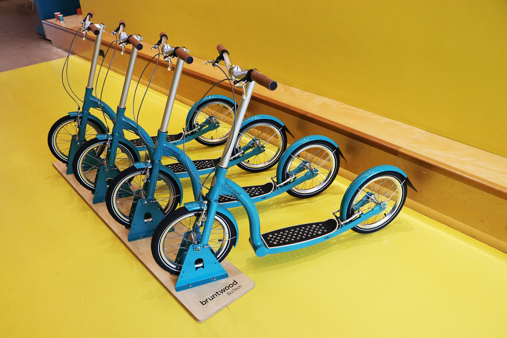 Bruntwood selected the adult kick-scooter SwiftyZERO MK2 which features 16" pneumatic wheels, front and rear V-brakes and is both lightweight and nimble to ride. These were custom painted according to the Bruntwood brand guidelines and branded with their logo.