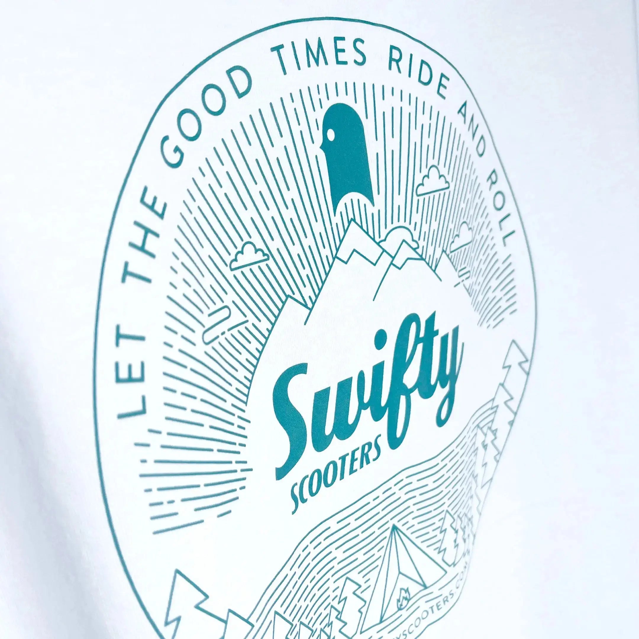 Inspired by adventure, the Good Times t-shirt features our mountain and sunset Swifty graphic on the back, and small Swifty logo on the front.