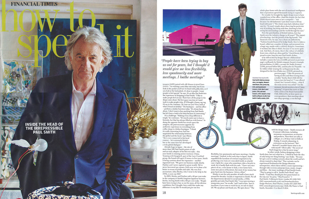Our special edition Swifty x Paul Smith featured in the Financial Times! Coinciding with the opening of the “Hello My Name Is Paul Smith” exhibition at the Design Museum, London. The FT featured this stunning article about the design legend, including a lovely picture of our Paul Smith SwiftyONE. www.designmuseum.org